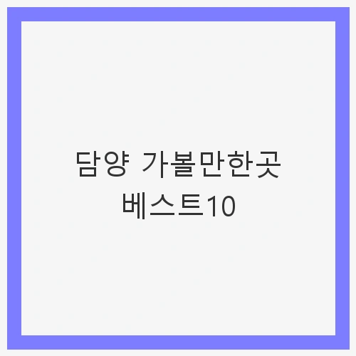 안녕하세요, 여행을 사랑하는 여러분! 오늘은 전라남도 담양의 매력적인 여행지를 소개해 드리려고 합니다. 담양은 청정 자연과 전통이 어우러진 아름다운 도시로, 슬로우 시티라는 명칭처럼 여유로운 시간을 보낼 수 있는 최적의 장소입니다. 다양한 관광명소가 모여 있어, 도보로 이동할 수 있는 곳들이 많고, 모든 연령대가 즐길 수 있는 매력을 지니고 있습니다. 그럼, 담양 가볼만한곳 베스트10을 함께 살펴보도록 하겠습니다.