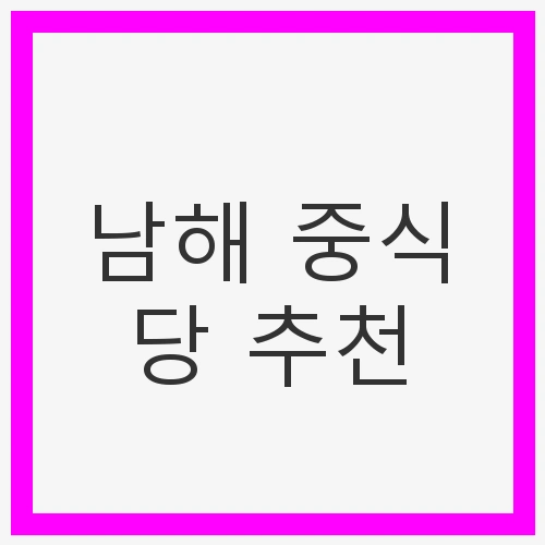 중식당에서의 식사는 단순히 배를 채우는 것이 아니라, 새로운 맛과 경험을 발견하는 여정입니다. 남해의 중식당에서는 가족과 함께 즐거운 시간을 보낼 수 있는 다양한 메뉴가 준비되어 있습니다. 여행 중에 중식당을 방문한다면, 다양한 메뉴를 경험해보며 나만의 맛있는 순간을 만들어보시길 바랍니다.